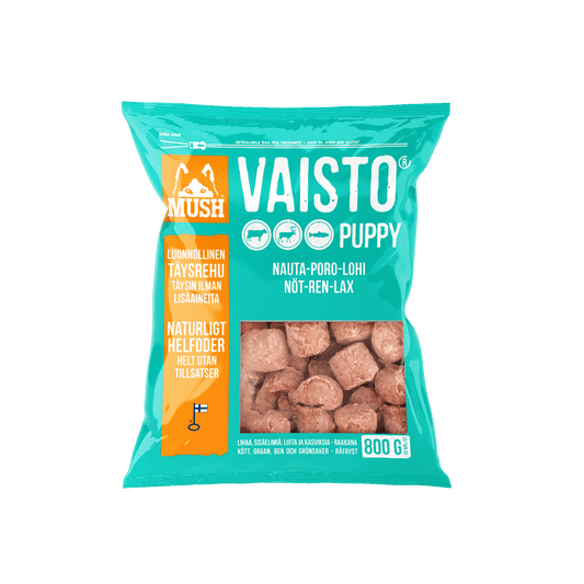 Vanlig pris Fra 99,00 NOKVanlig prisEnhetspris / perSalgspris Fra 99,00 NOKVaisto isblå puppy fryst | storfe-reinsdyr-laks | 800g/3kg