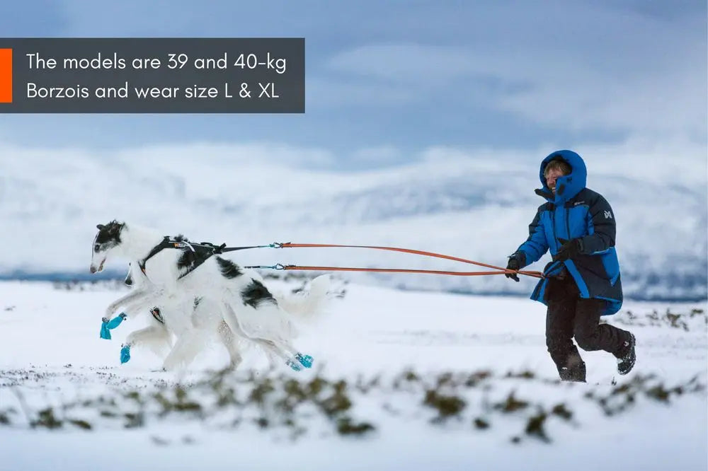 Sokker som sitter godt og beskytter hundens poter mot snø og is. Potesokkene er svært lette og gir hunden godt grep.