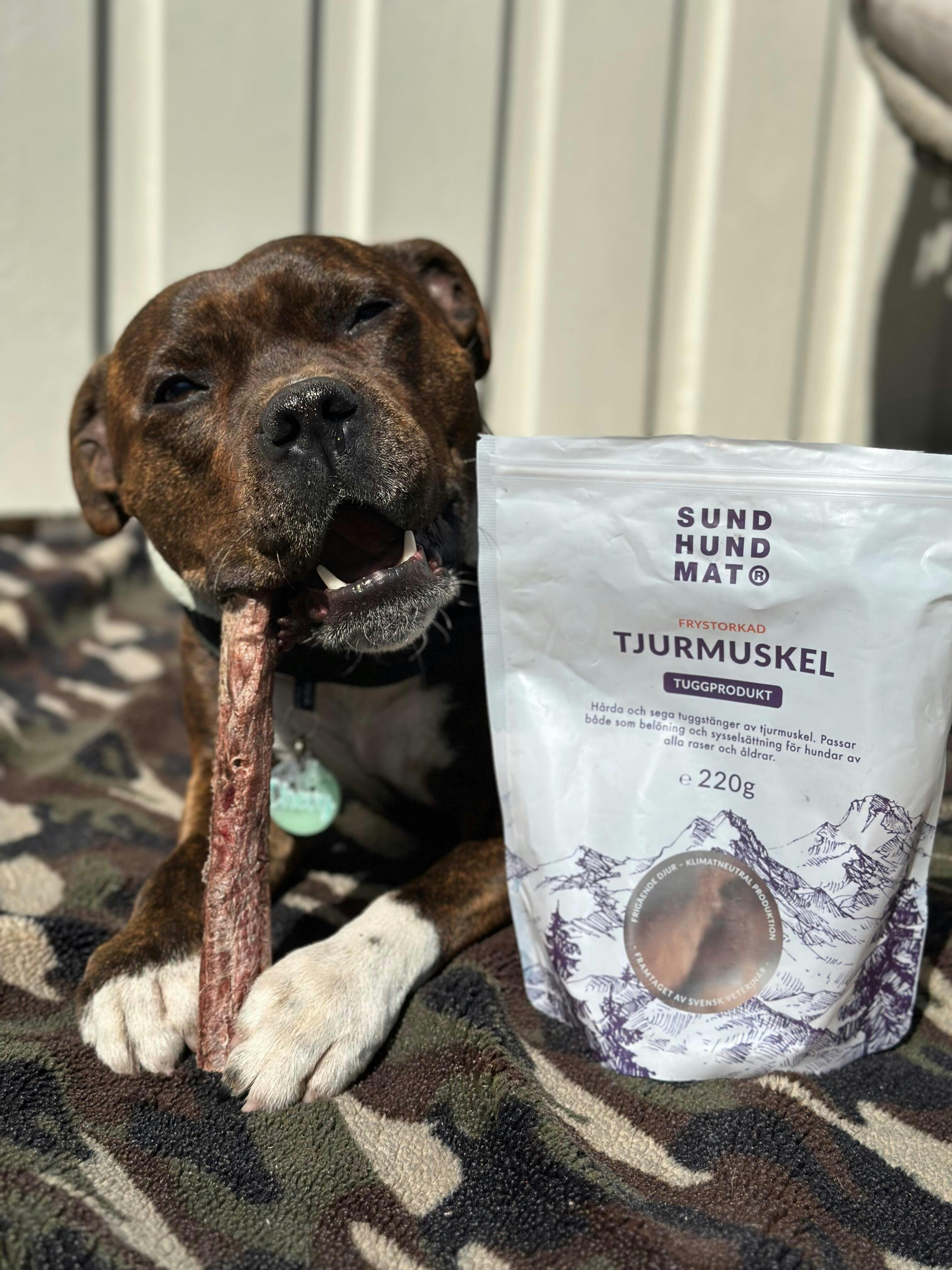 Guttene mine ELSKER frysetørket oksemuskel fra Sund Hundmat! De får virkelig noe å tygge på, og det varer lenge uten å lukte. Vi har delt med andre firbeinte venner, og de ender alltid opp med å kjøpe selv etter å ha sett hvor begeistret hundene deres blir. Dette er et genialt tyggeprodukt vi kjøper om og om igjen! Anbefales på det sterkeste♥️