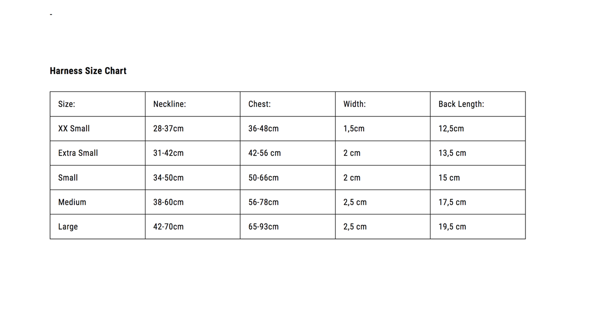 XX Small | 28-37cm | 36-48cm | 1,5cm | 12,5cm |